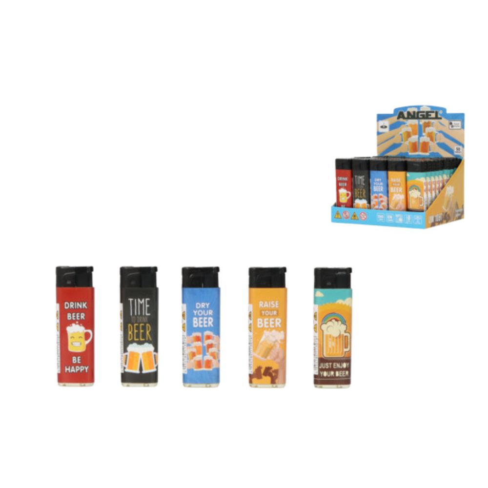 Realizata din plastic, bricheta este disponibila in 5 variante - modele diferite cu design "Jet Beer Plastic", in diverse culori - in cadrul unui display cu 50 de bucati. Culoarea produsului se livreaza in functie de stocul disponibil.