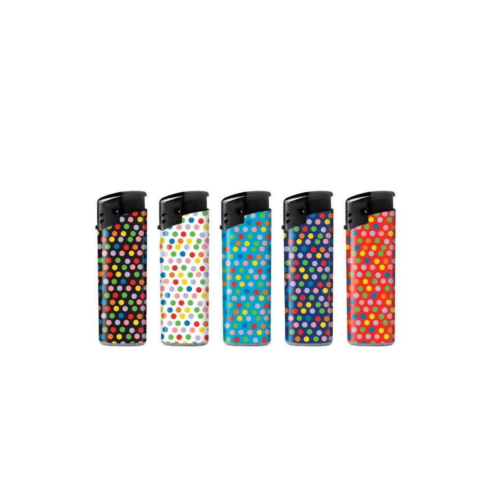 Bricheta Angel, cu flacara calda. Realizata din plastic, bricheta este disponibila in 5 variante - modele diferite cu imagini "Dots" - in cadrul unui display cu 50 de bucati. Culoarea produsului se livreaza in functie de stocul disponibil.