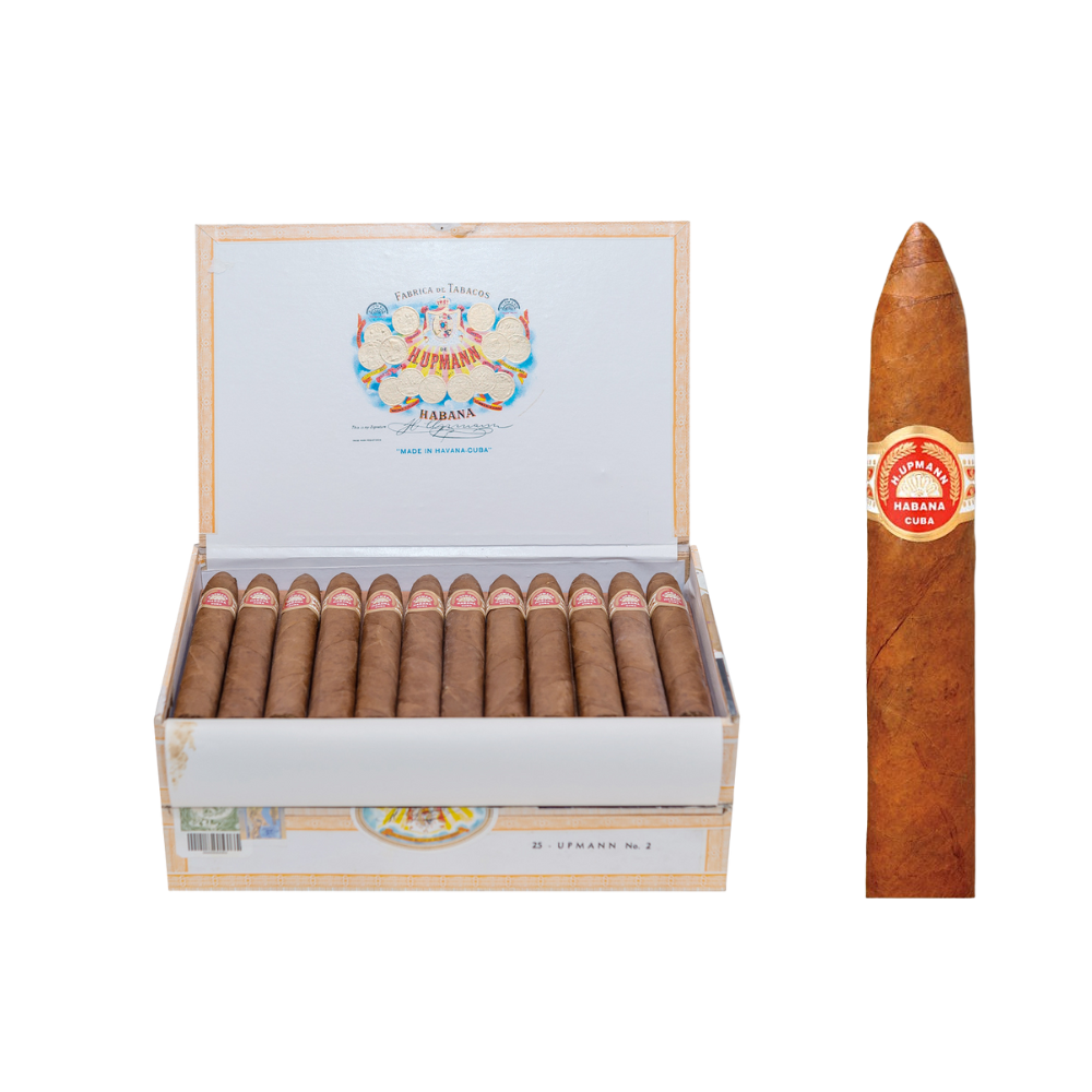 Trabucurile H. Upmann No. 2 (25), au o tarie slaba-medie, o lungime de 156mm, un inel de 52, iar cutia contine 25 trabucuri atent concepute.
