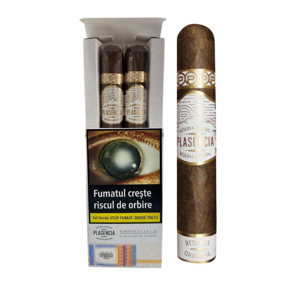 Trabucurile Plasencia Reserva Original Robusto (2), au o tarie medie, o lungime de 120mm cu un inel de 52, iar pachetul contine 2 trabucuri atent concepute.